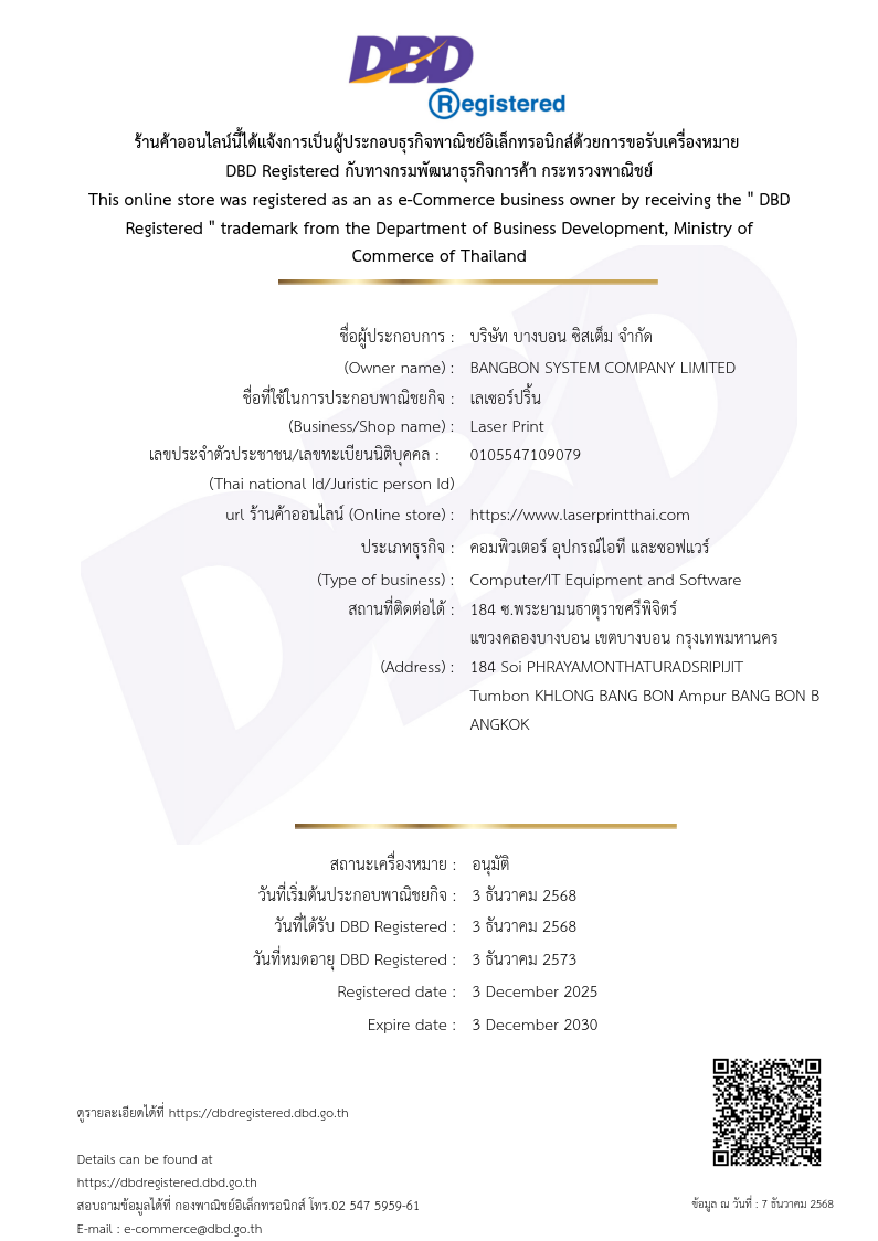 ปริมาณการพิมพ์ 1,000 แผ่น (5% Coverage ISO IEC 24712)