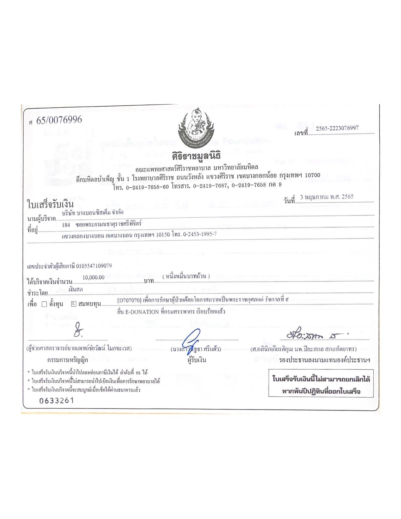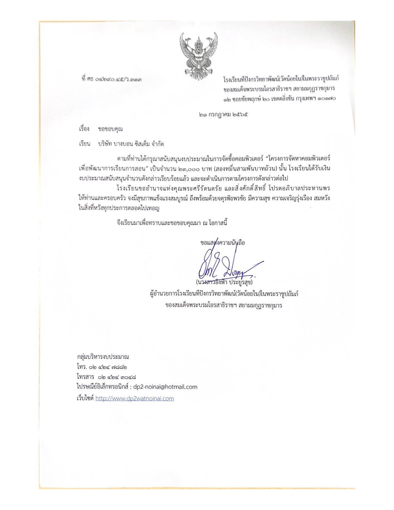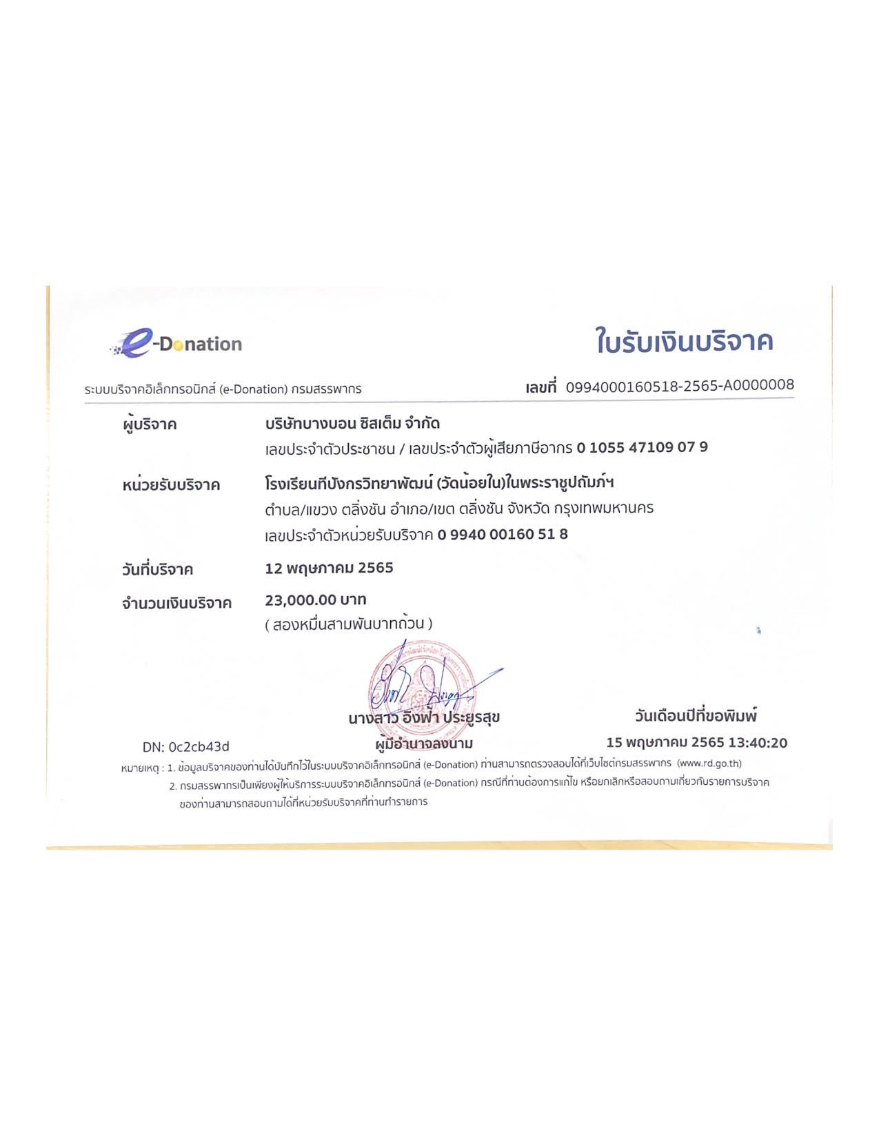 ทางบริษัท บางบอน ซิสเต็ม จำกัด ได้ทำการบริจาคไปยังมูลนิธิต่างๆ ดังนี้