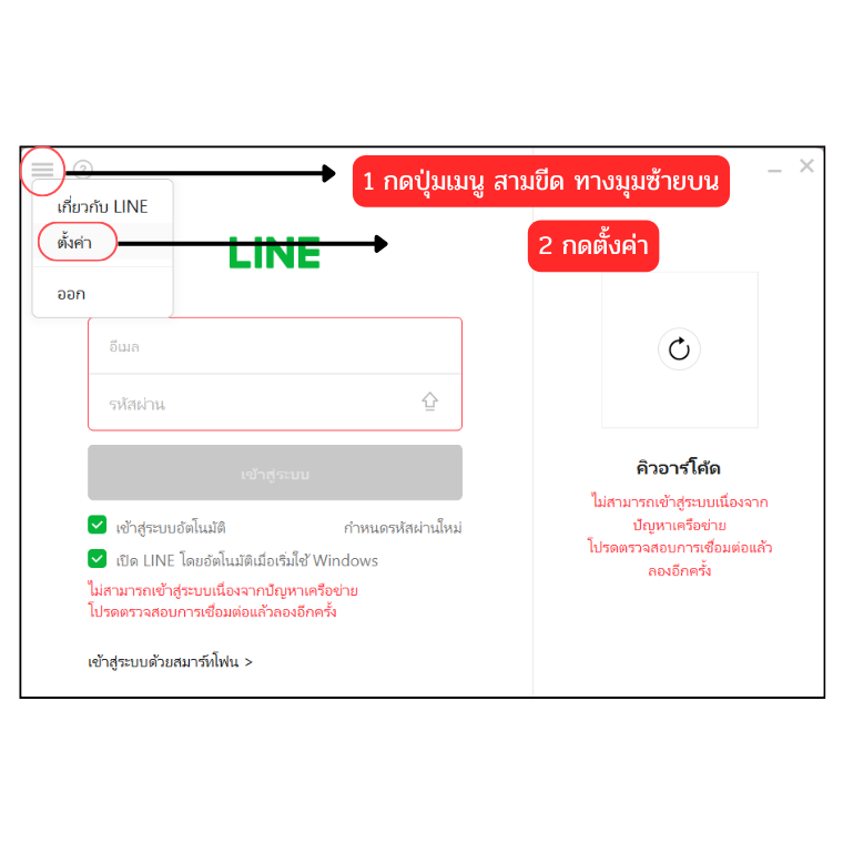 เมื่อเข้า Line Pc ไม่ได้ ขึ้นว่า