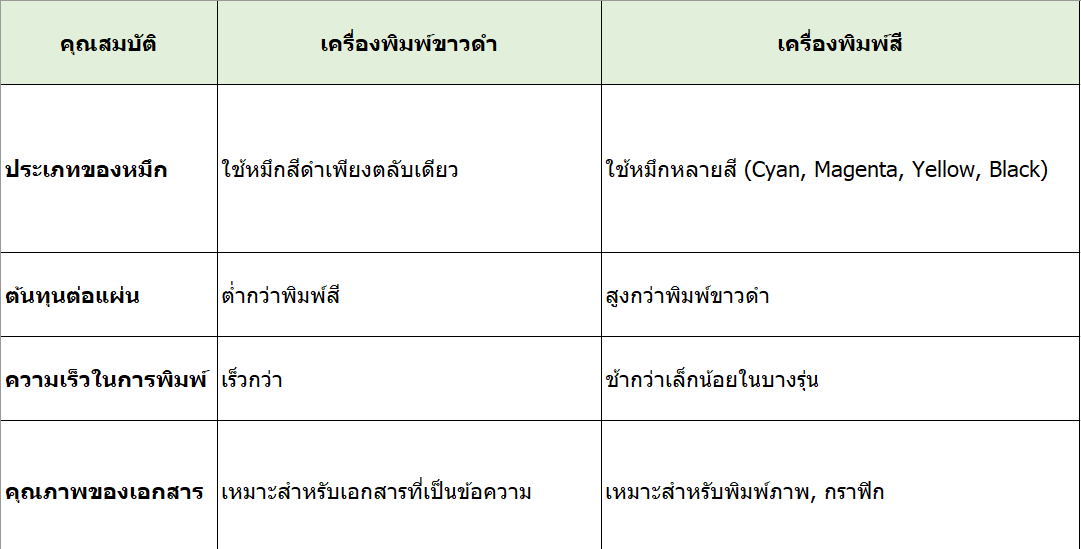 1. ความแตกต่างระหว่างเครื่องพิมพ์สีและขาวดำ